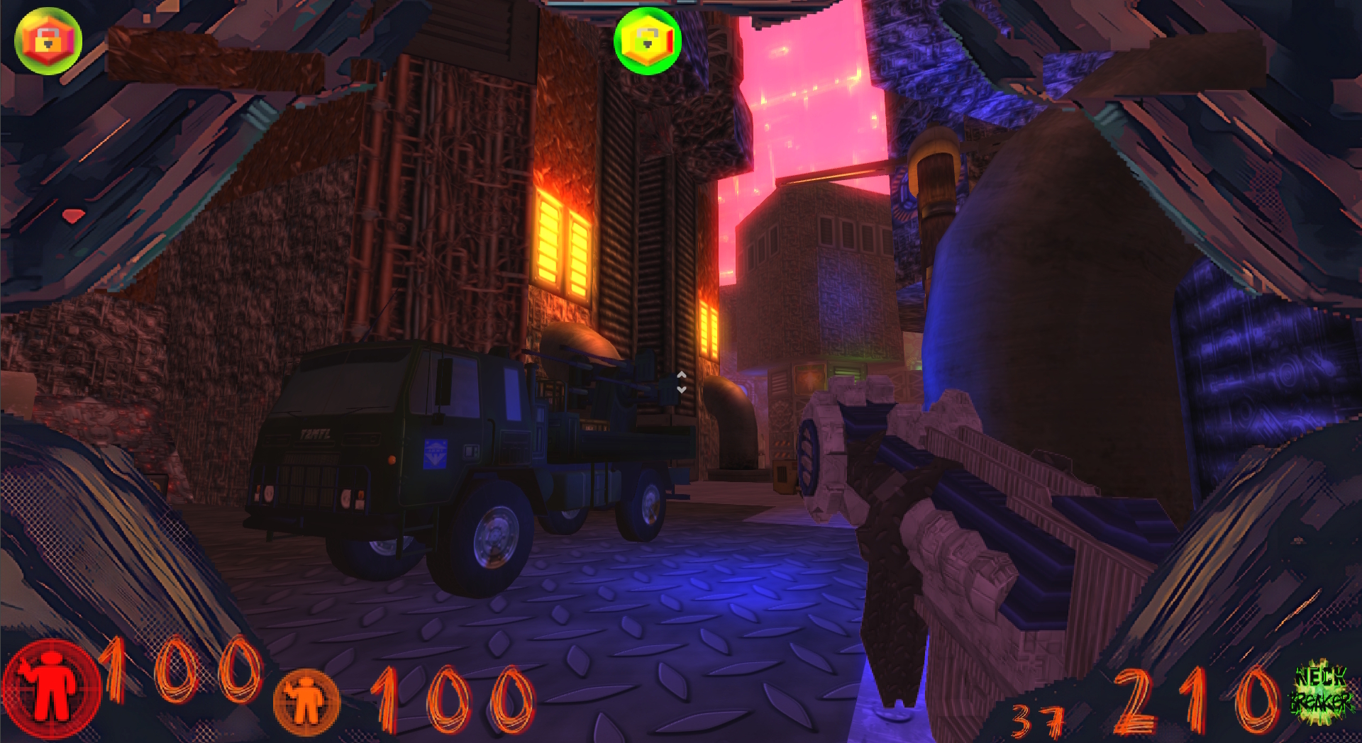 Looks great. Has a Doom feel to it. You've come a long way with your project! Well done.